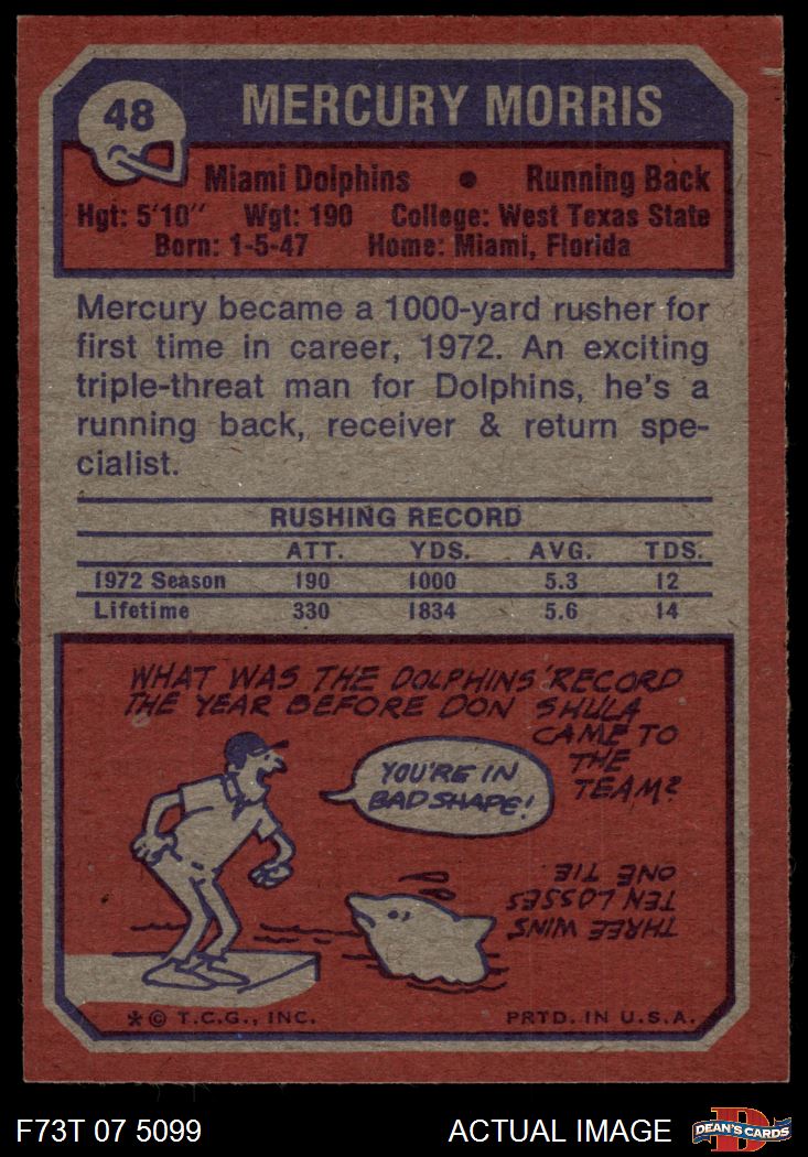 1973 Topps #48 Mercury Morris 7 - NM