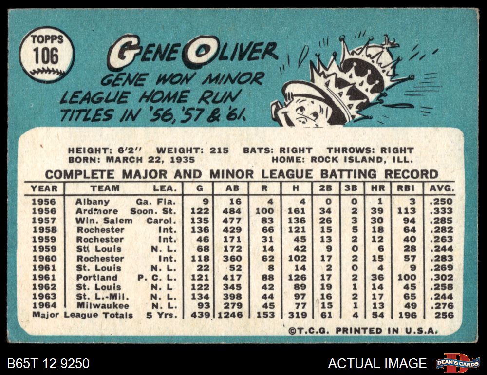 1965 Topps #106 Gene Oliver 3 - VG