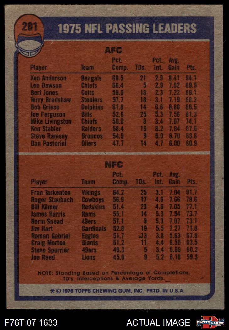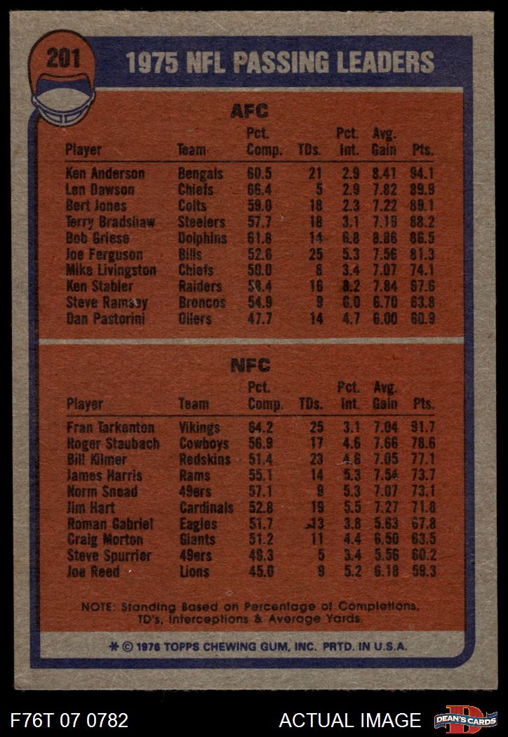 1976 Topps #201 - Fran Tarkenton / Ken Anderson Passing Leaders 4 - VG/EX