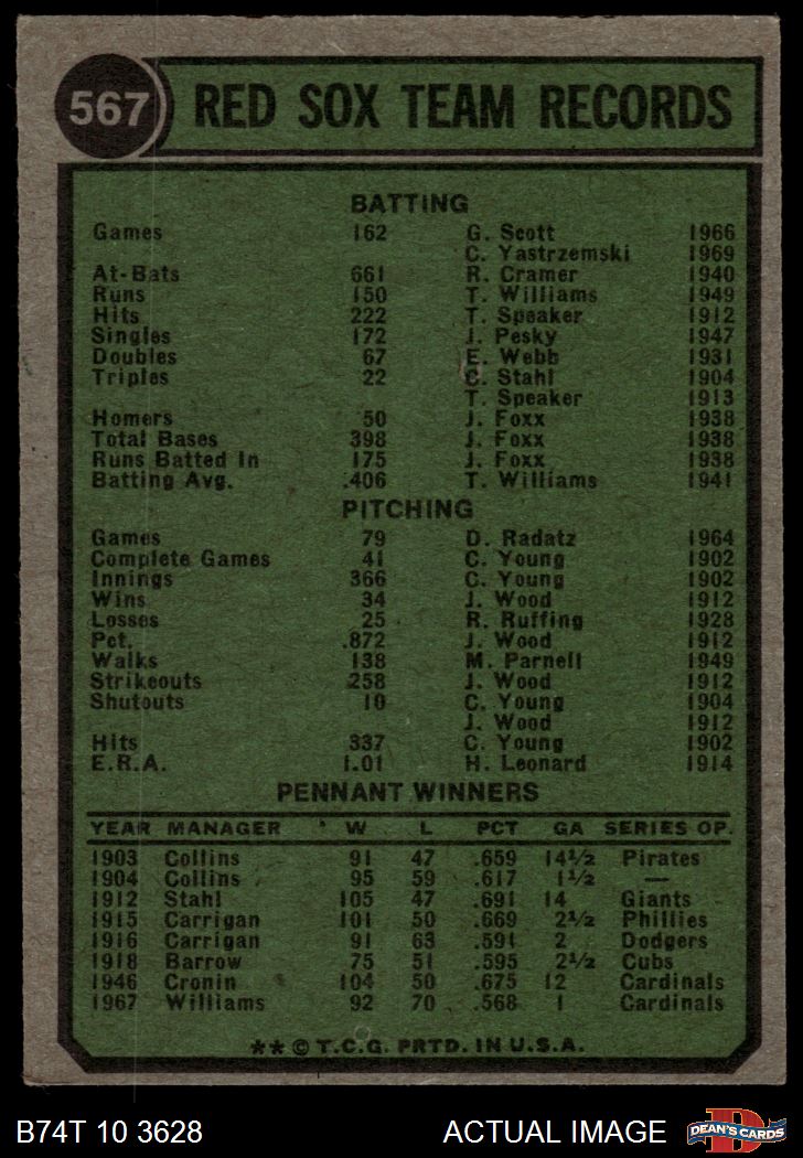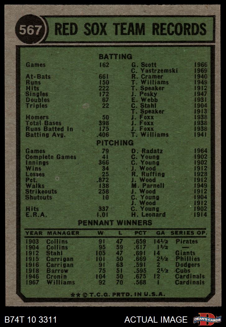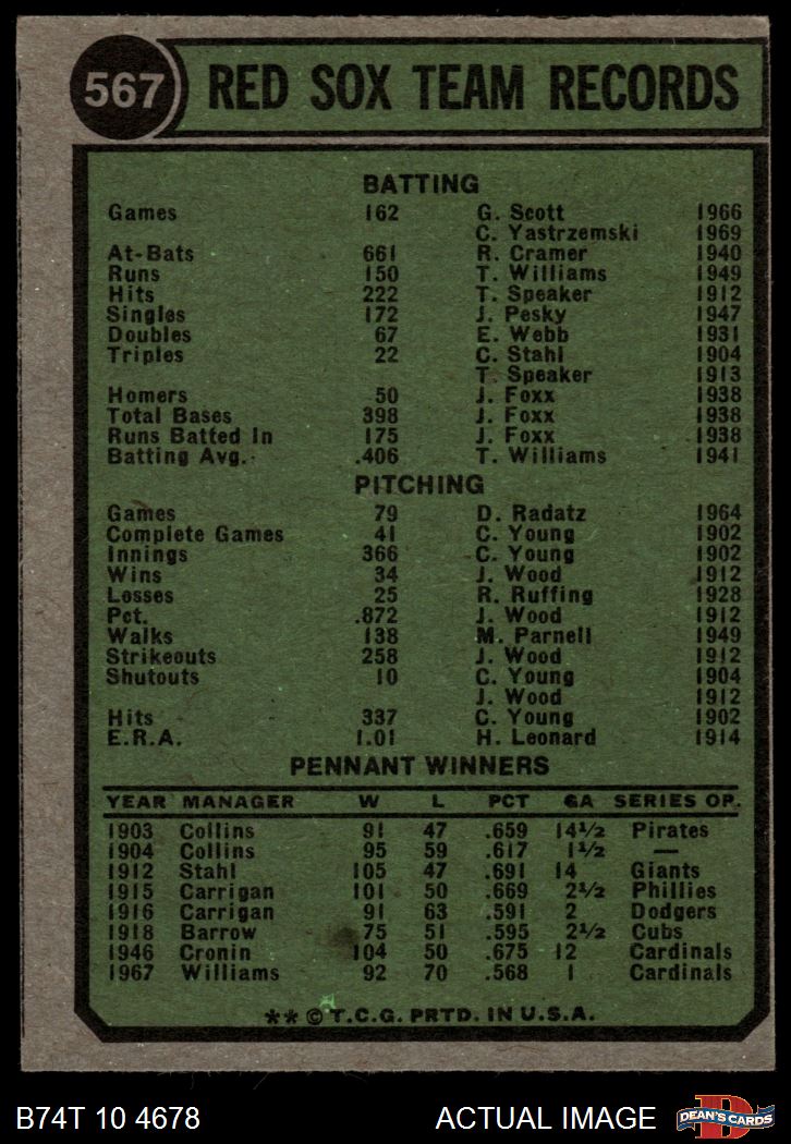 1974 Topps #567 Red Sox Team