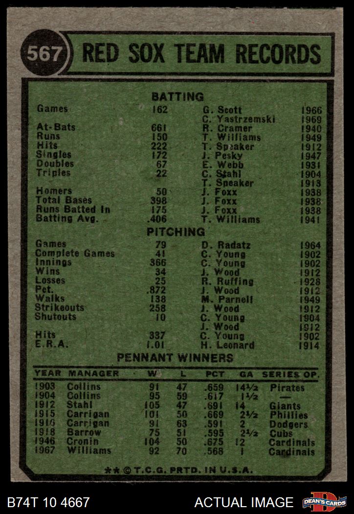 1974 Topps #567 Red Sox Team 2 - GOOD