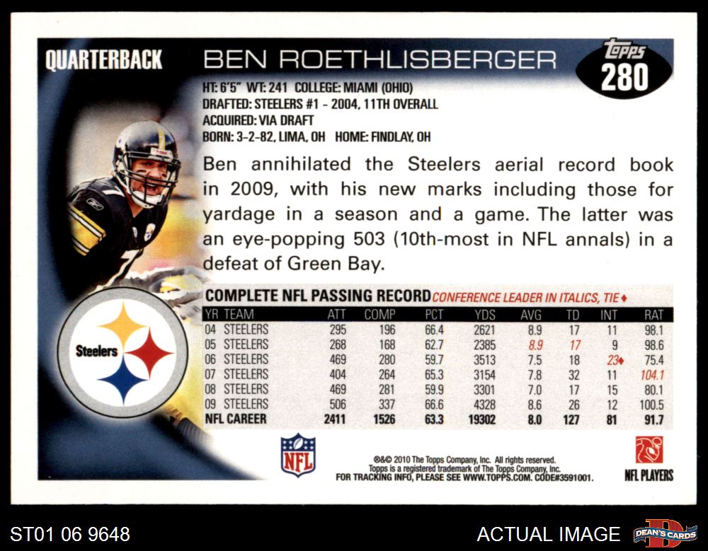 2010 Topps #280 Ben Roethlisberger 8 - NM/MT