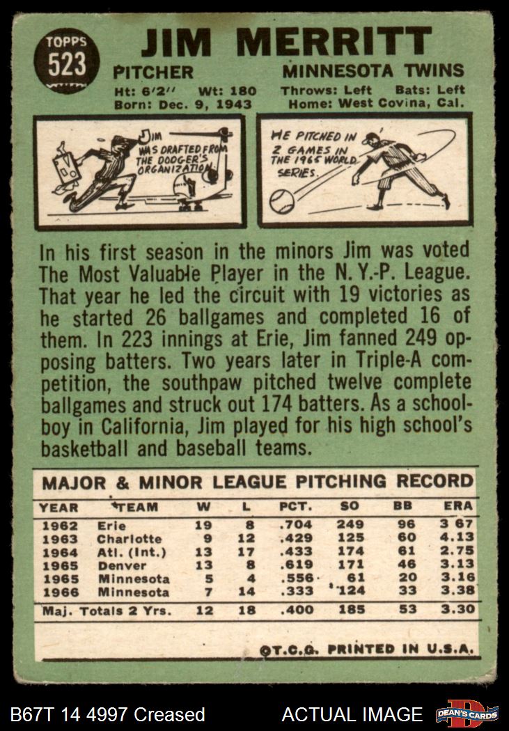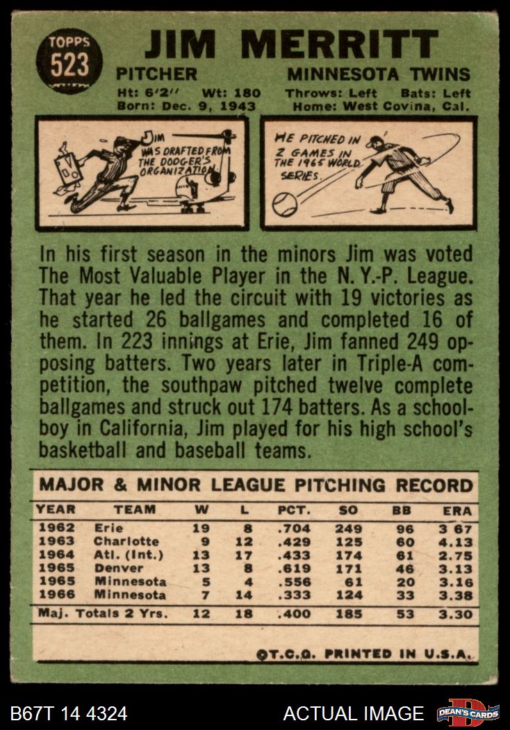 1967 Topps #523 Jim Merritt