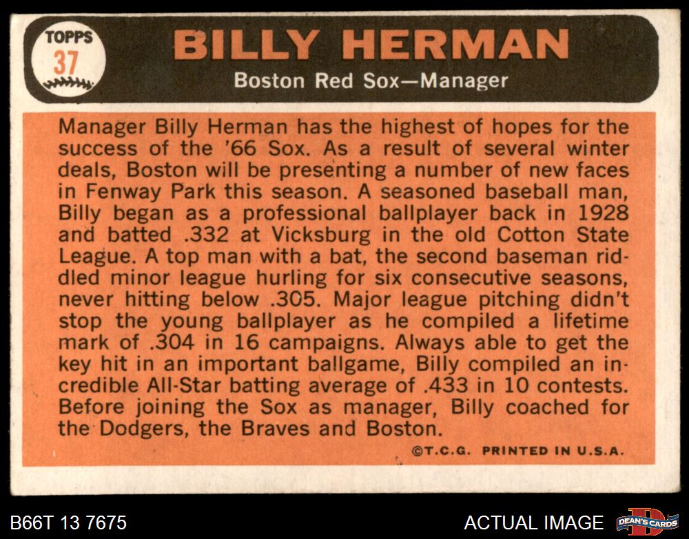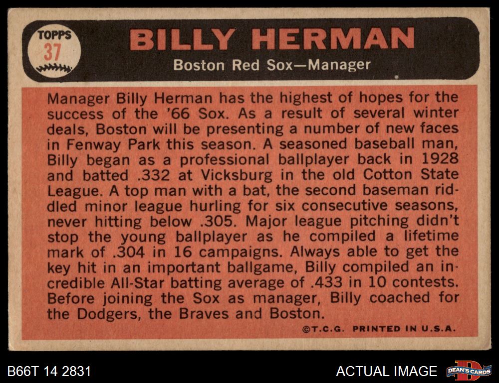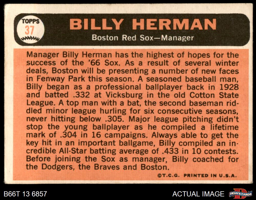 1966 Topps #37 Billy Herman