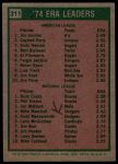 1975 1975 #311  -  Catfish Hunter / Buzz Capra ERA Leaders Front Thumbnail