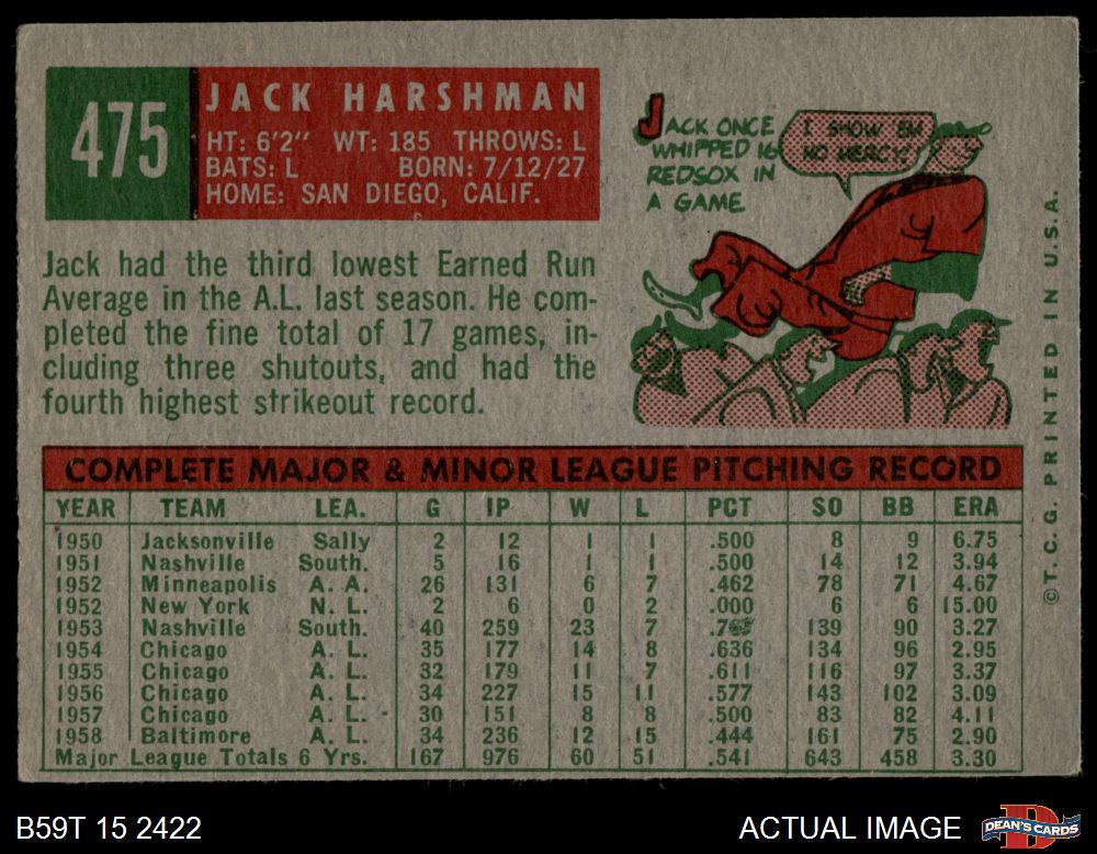 1959 Topps #475 Jack Harshman 3 - VG