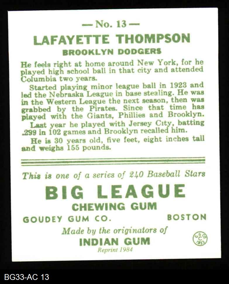 1933 Goudey Reprint #13 Lafayette Thompson 8 - NM/MT