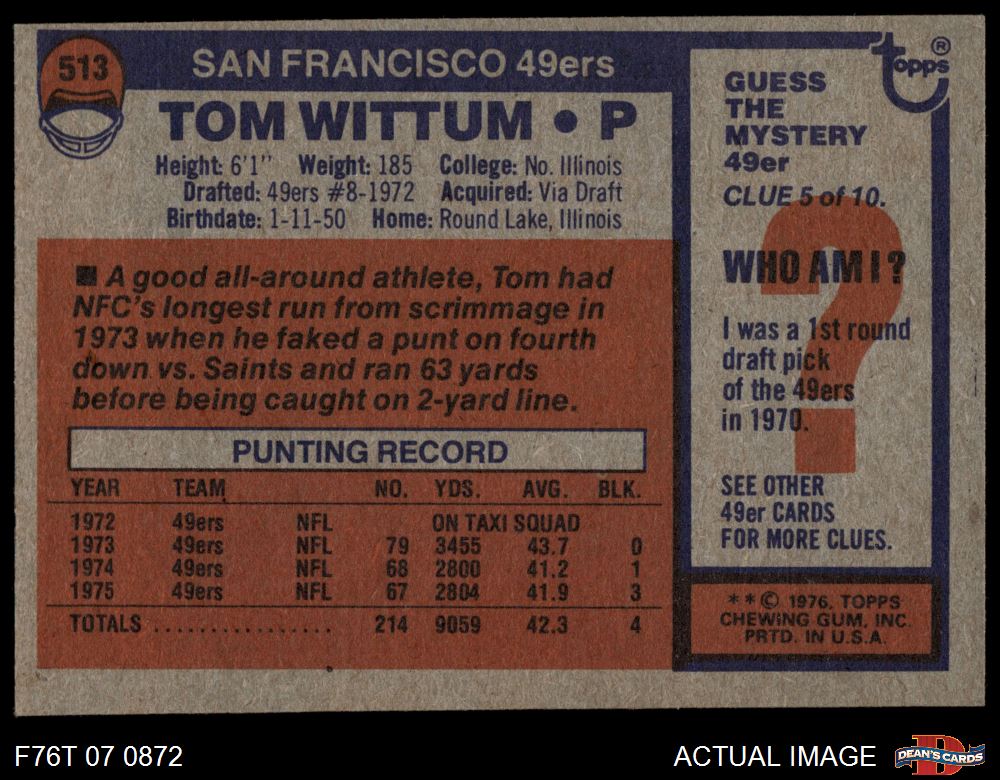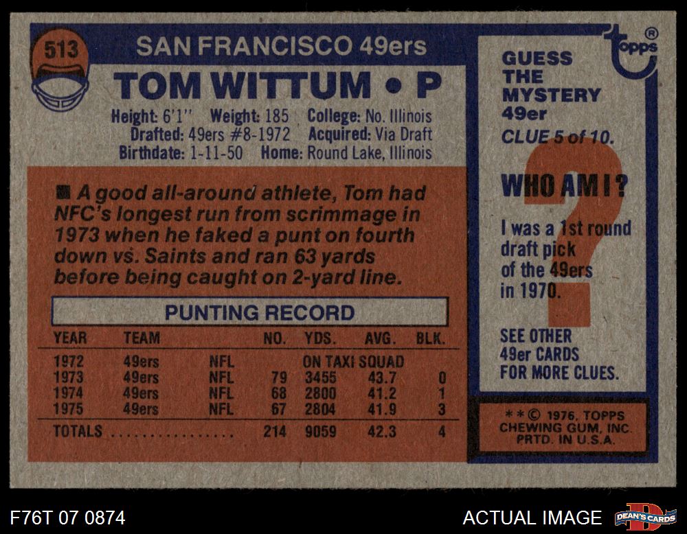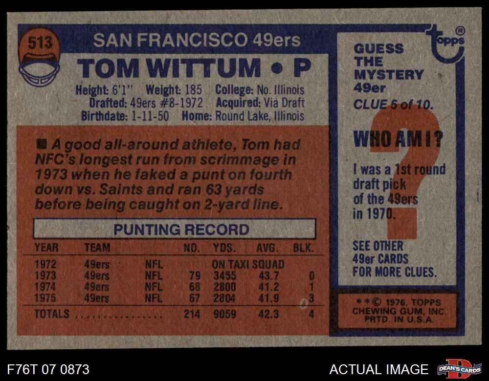 1976 Topps Football Cards (7,282 available)1976 Topps 49ers (170 available)