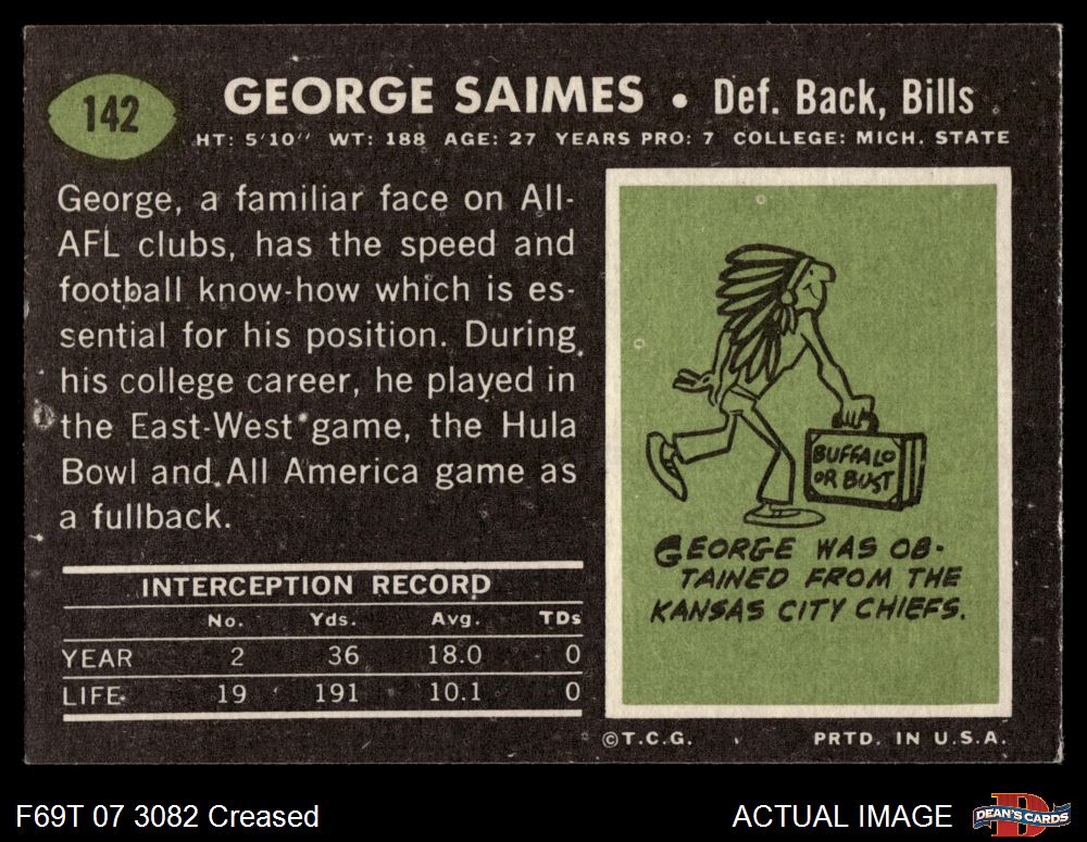 1969 Topps #142 George Saimes Front Thumbnail
