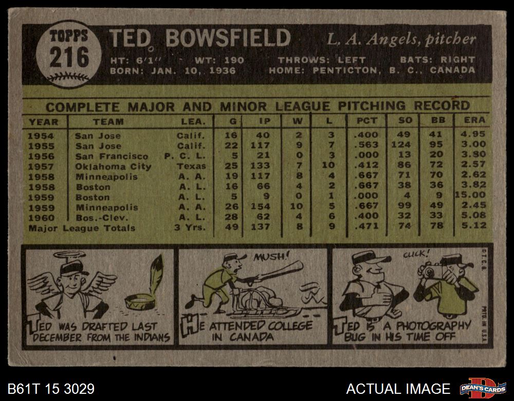 1961 Topps #216 Ted Bowsfield 3 - VG