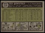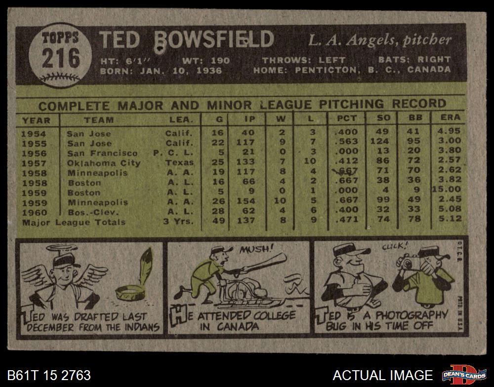 1961 Topps #216 Ted Bowsfield 5 - EX