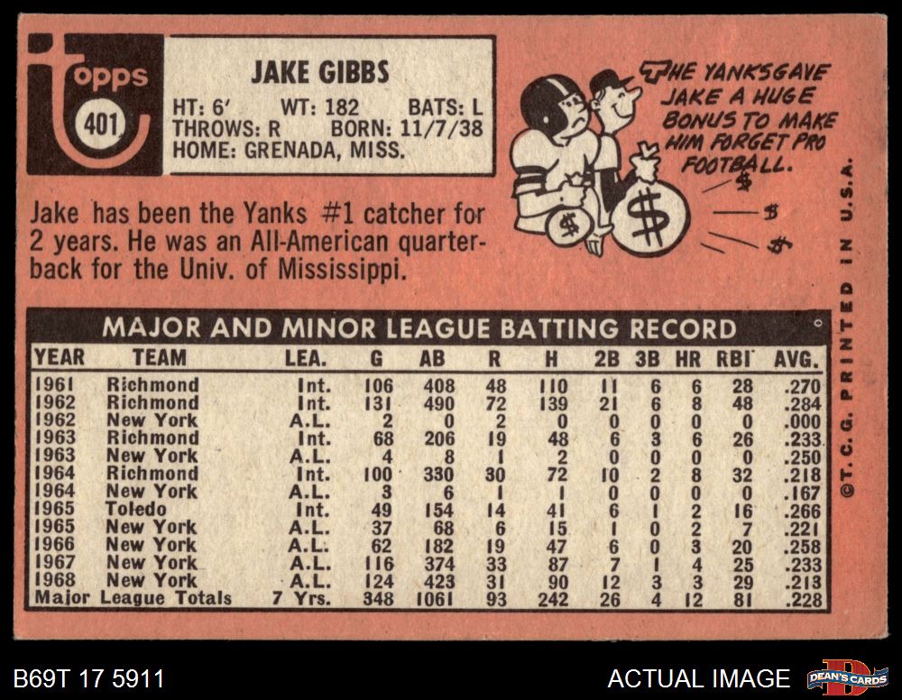 1969 Topps #401 Jake Gibbs 4 - VG/EX