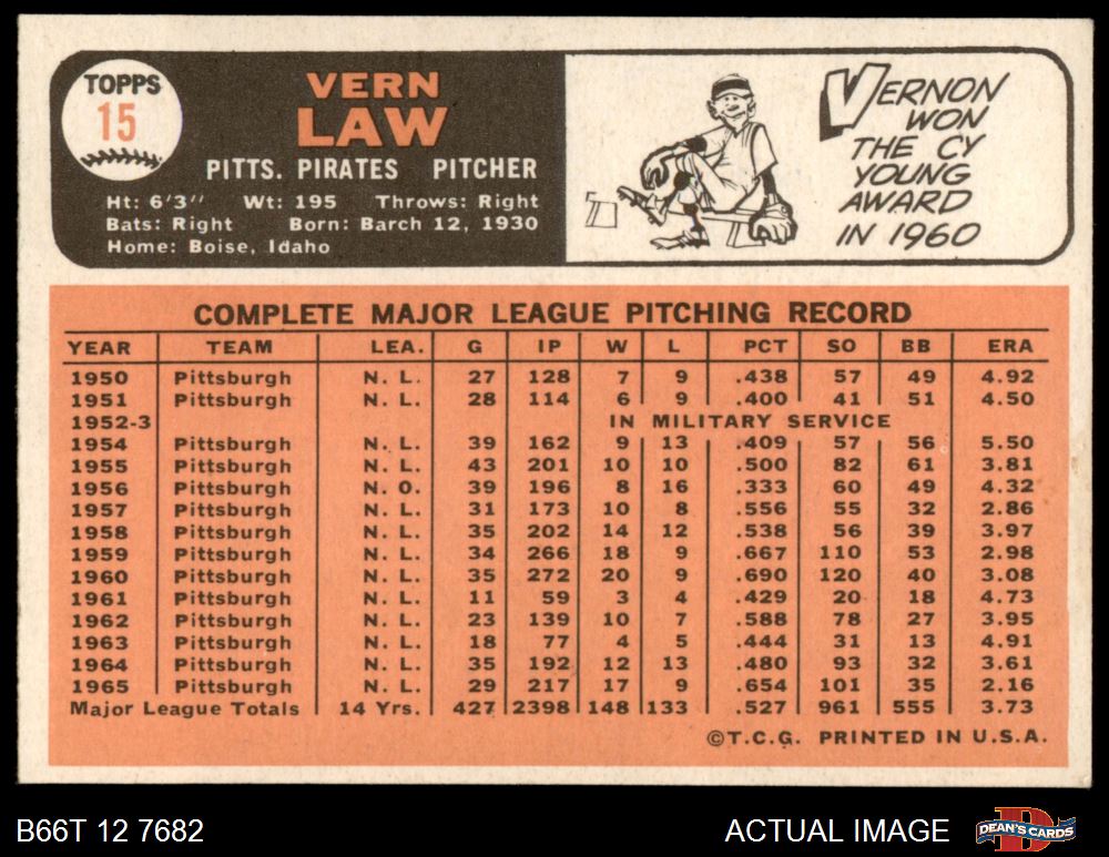 1966 Topps #15 Vern Law AUTOGRAPHED