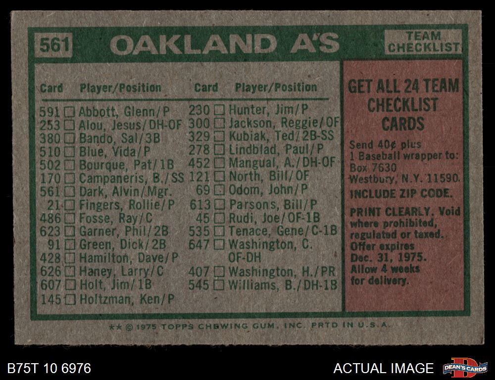1975 Topps #561 - Al Dark Athletics Team Checklist 4.5 - VG/EX+