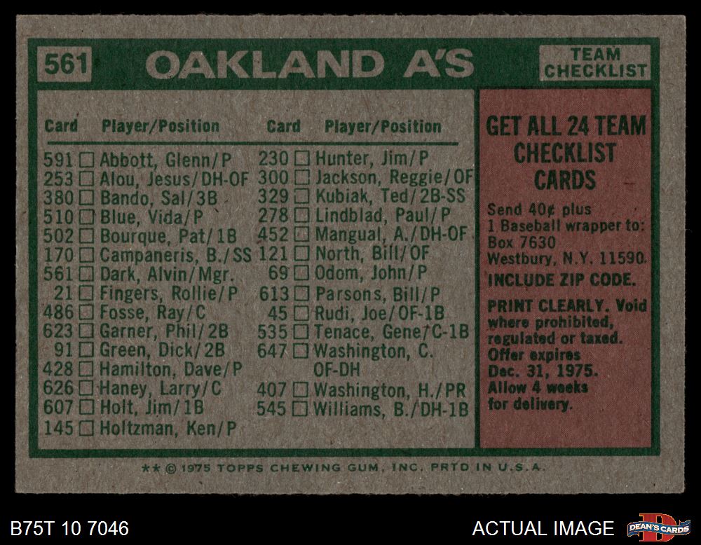 1975 Topps #561 - Al Dark Athletics Team Checklist 5 - EX