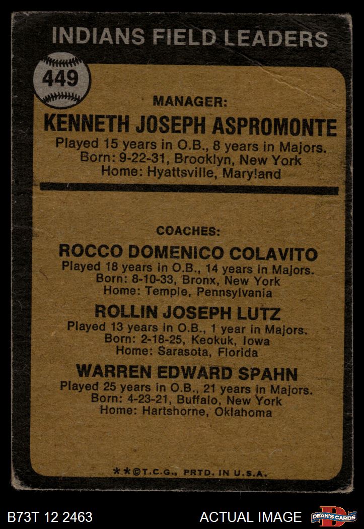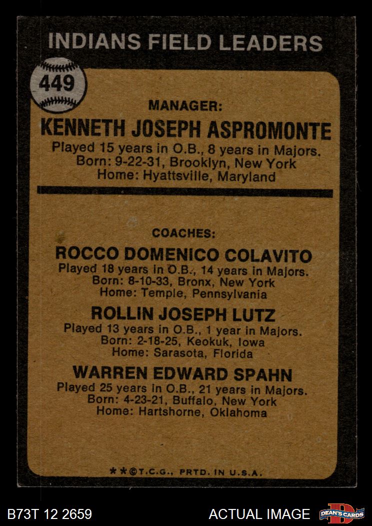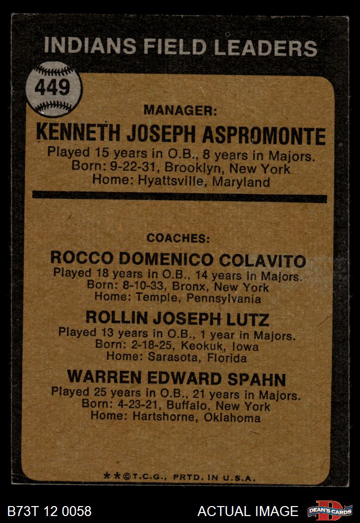 Ken Aspromonte / Rocky Colavito / Joe Lutz / Warren Spahn (34 available)
