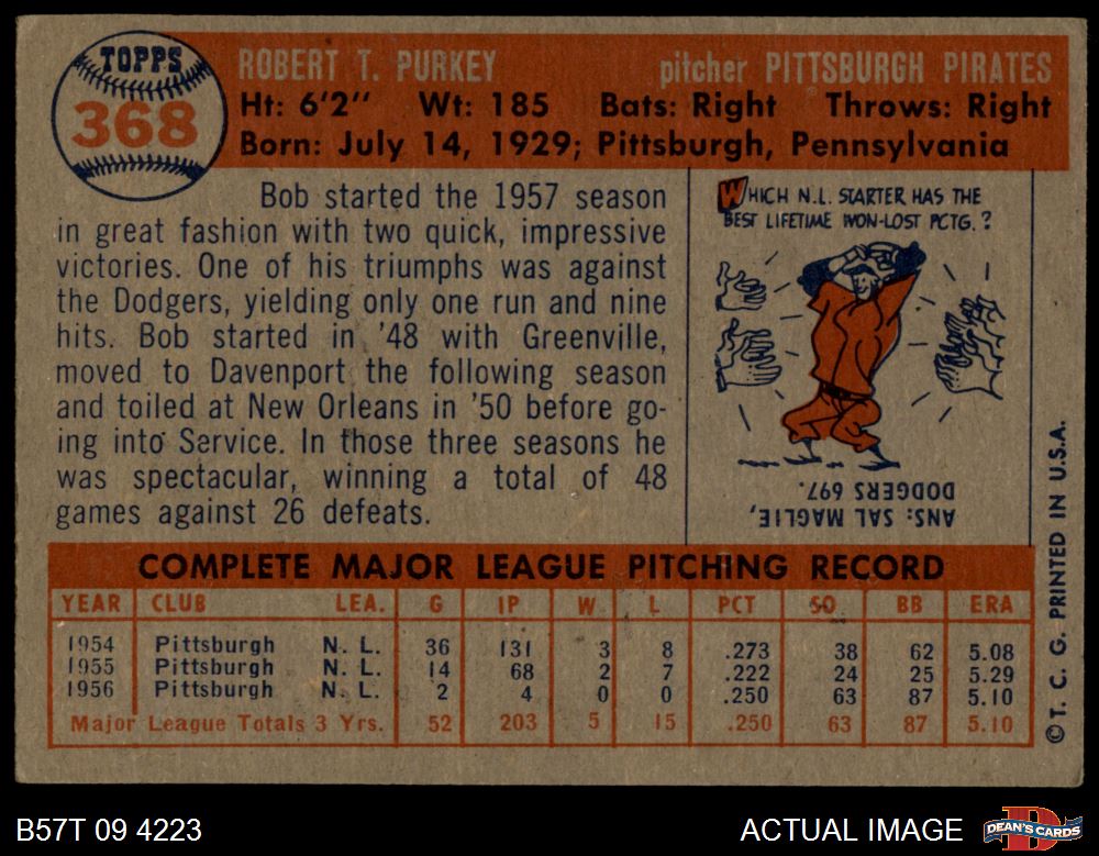 1957 Topps Baseball Cards (5,303 available)1957 Topps Pirates (365 available)
