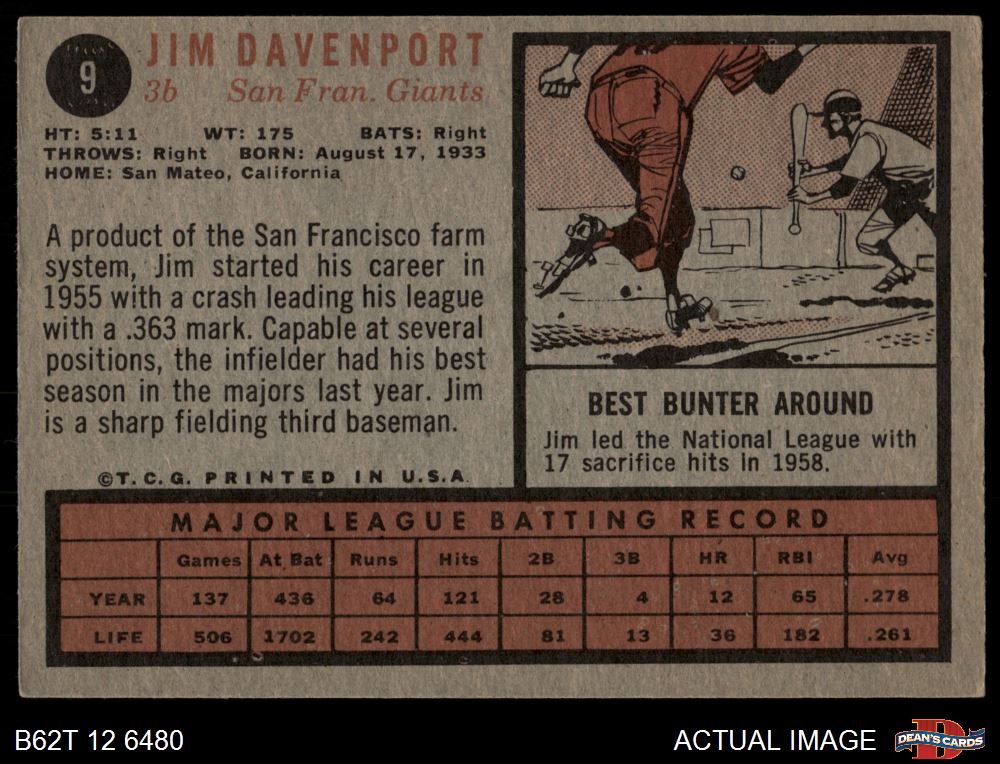 1962 Topps #9 Jim Davenport 2 - GOOD