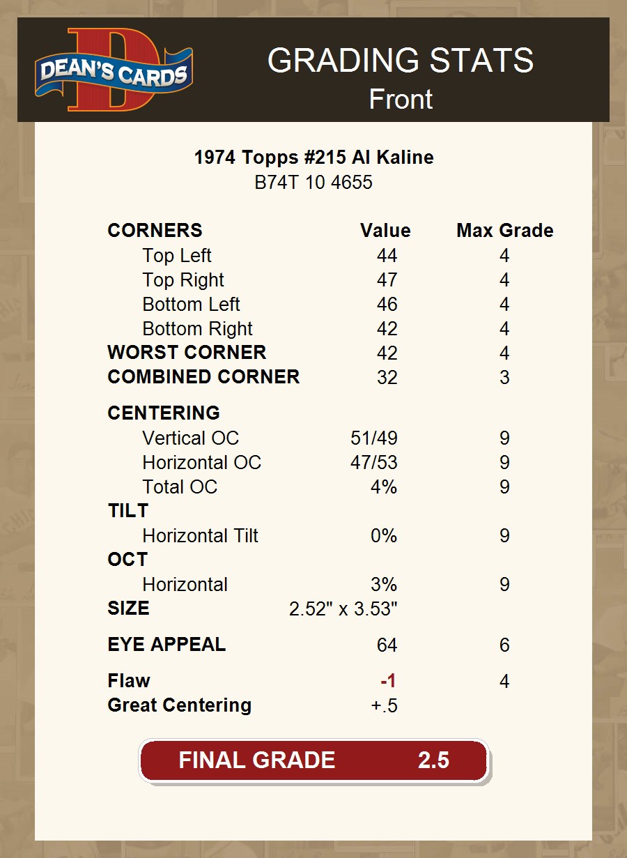 1974 Topps #215 Al Kaline 2.5 - GD+