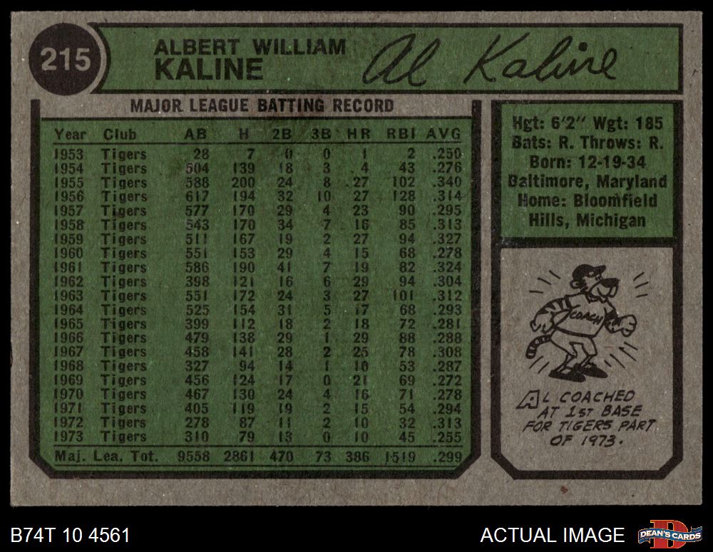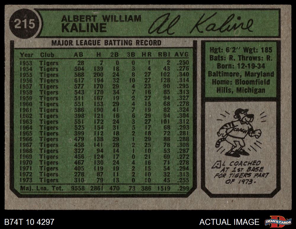 1974 Topps #215 Al Kaline 4 - VG/EX