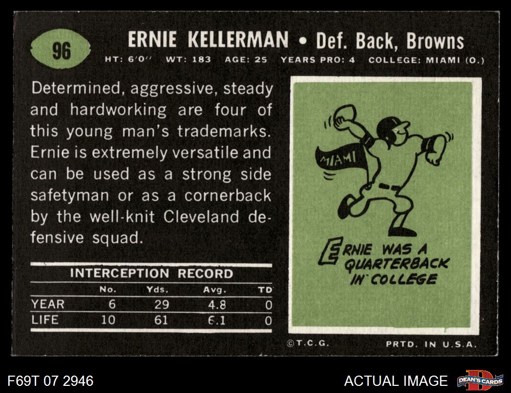 1969 Topps #96 Ernie Kellerman 4 - VG/EX