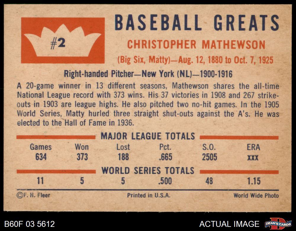 1960 Fleer #2 Christy Mathewson 7 - NM