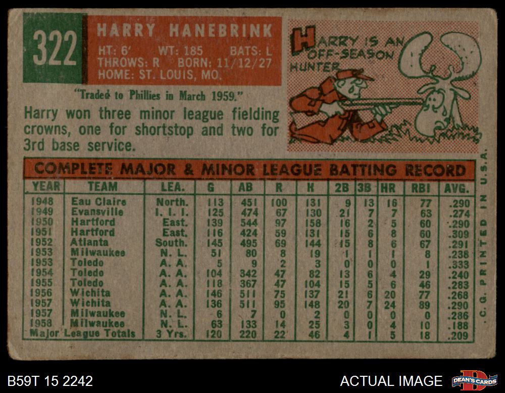 1959 Topps #322 TR Harry Hanebrink Front Thumbnail