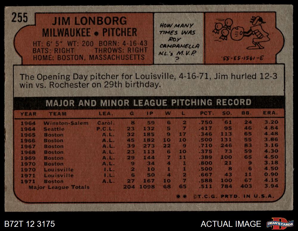 1972 Topps #255 Jim Lonborg 1 - POOR