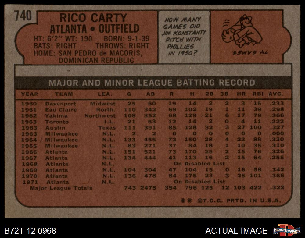 1972 Topps #740 Rico Carty
