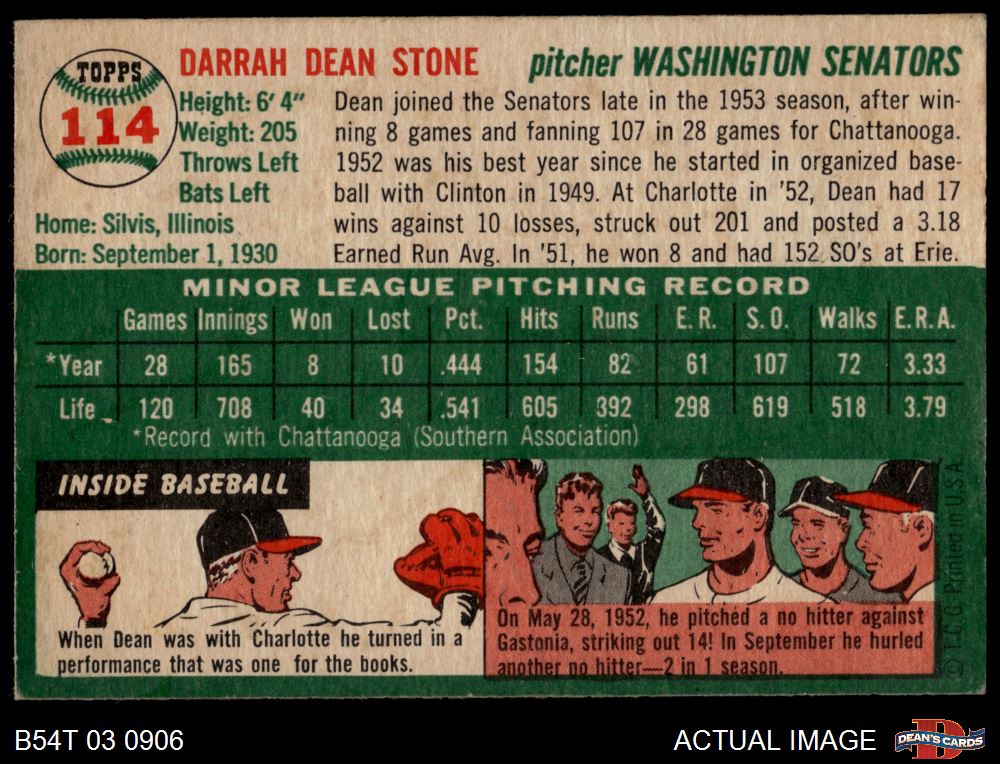 1954 Topps #114 Dean Stone 4 - VG/EX