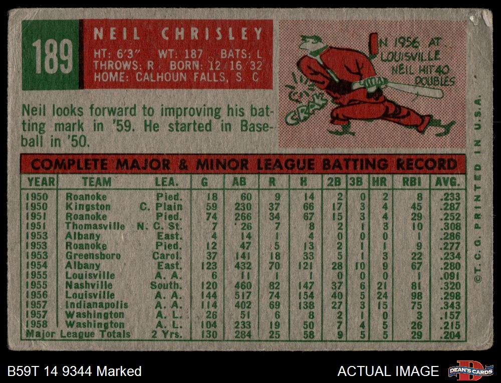 1959 Topps #189 Neil Chrisley 1 - POOR