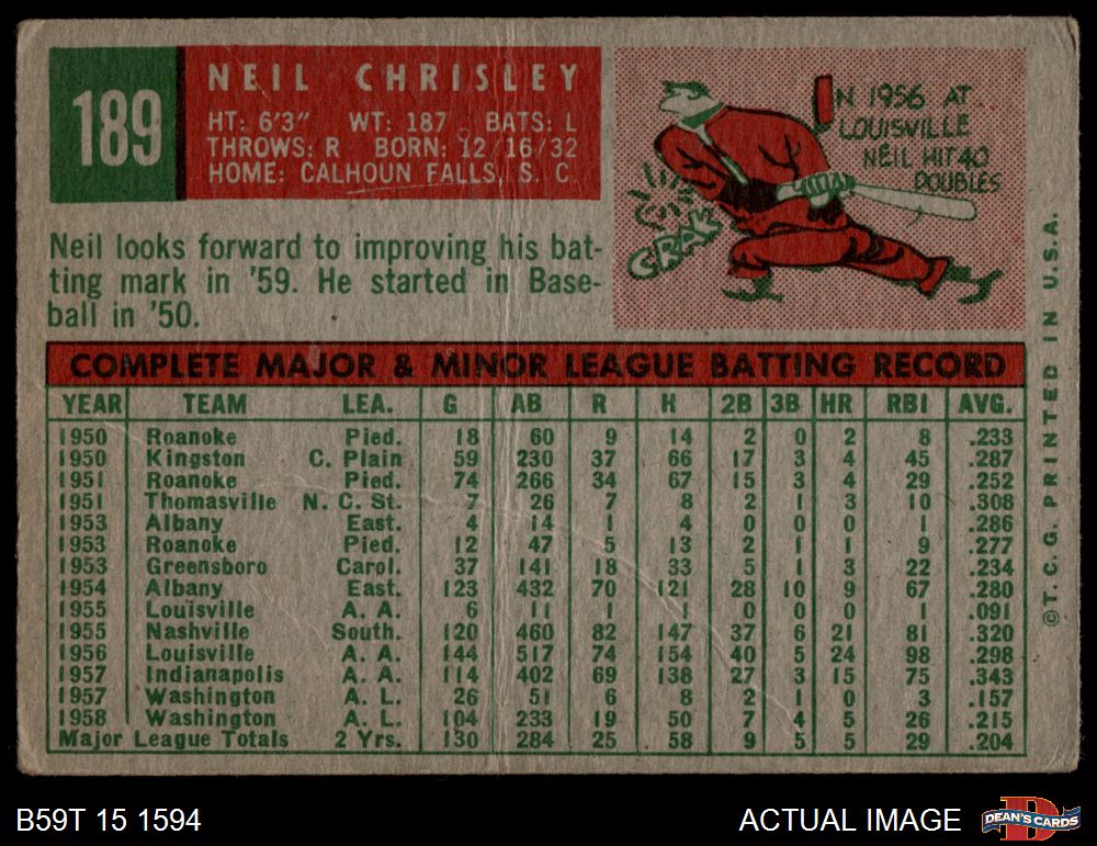 1959 Topps #189 Neil Chrisley 1.5 - FAIR