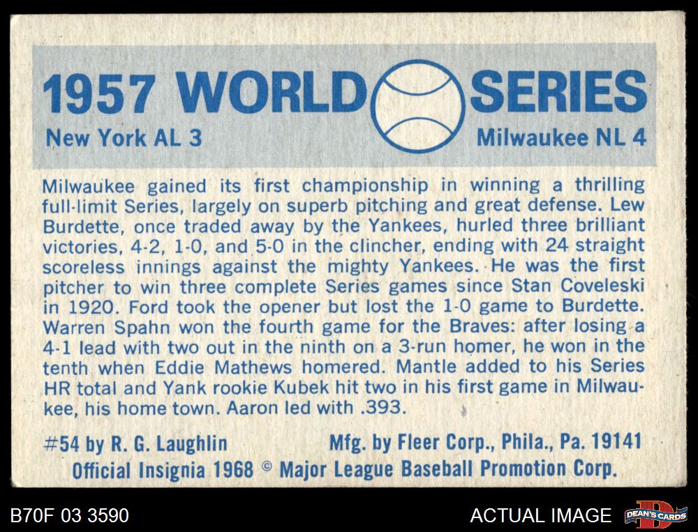 1970 Fleer World Series #54 - Lew Burdette 1957 Braves vs. Yankees 4 - VG/EX