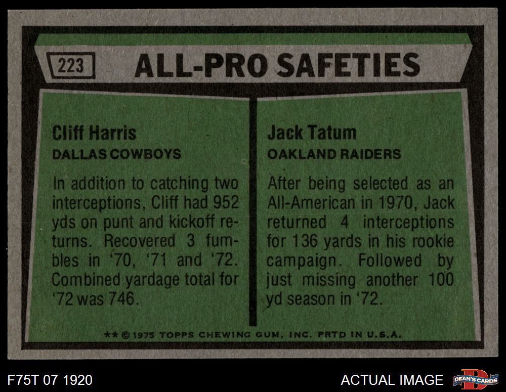 1975 Topps #223 - Cliff Harris / Jack Tatum All-Pro Safeties 5.5 - EX+