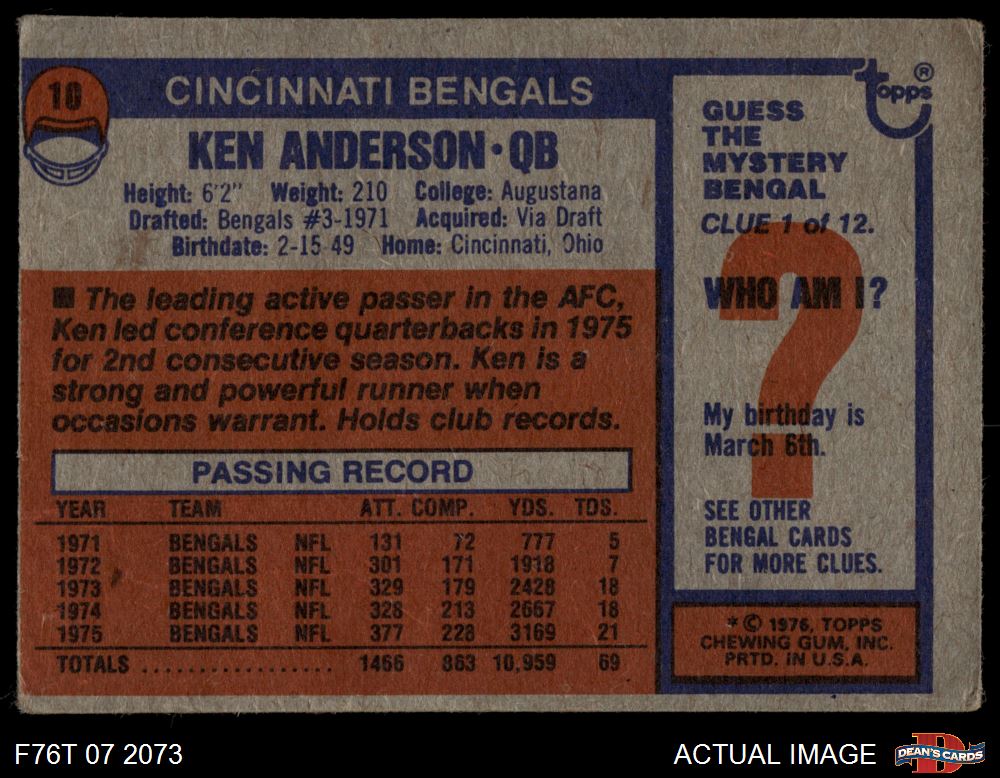 1976 Topps #10 Ken Anderson 1.5 - FAIR