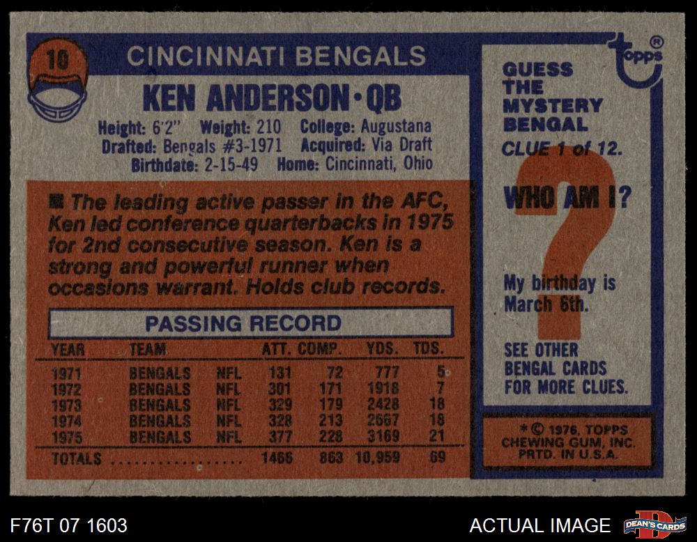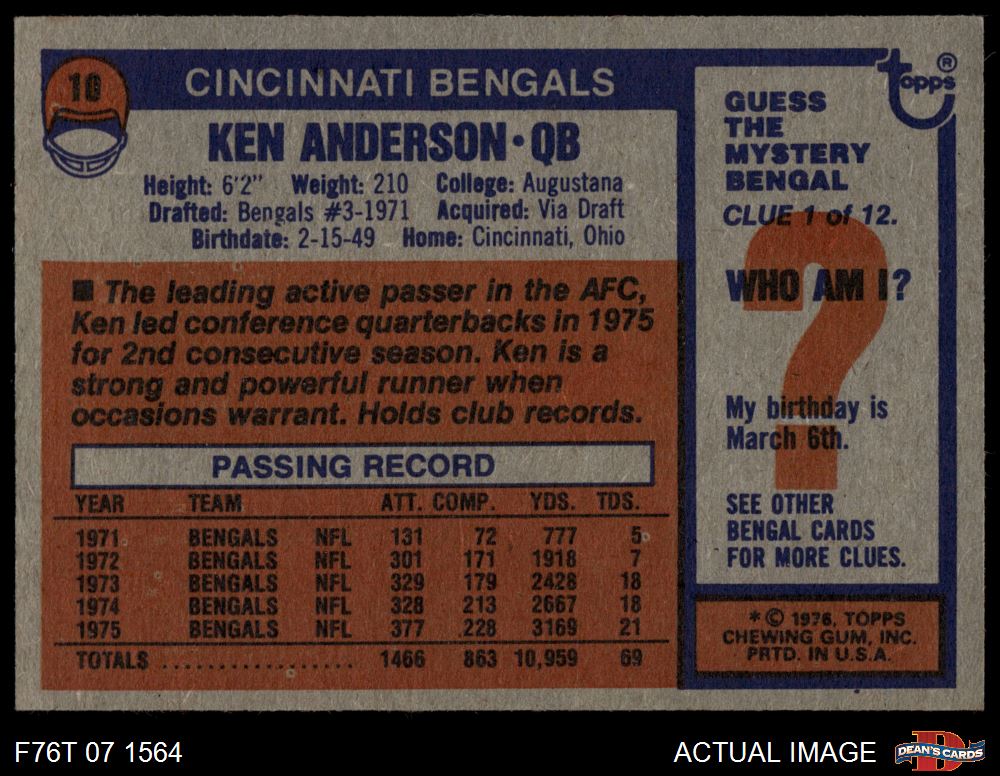 1976 Topps #10 Ken Anderson 3.5 - VG+
