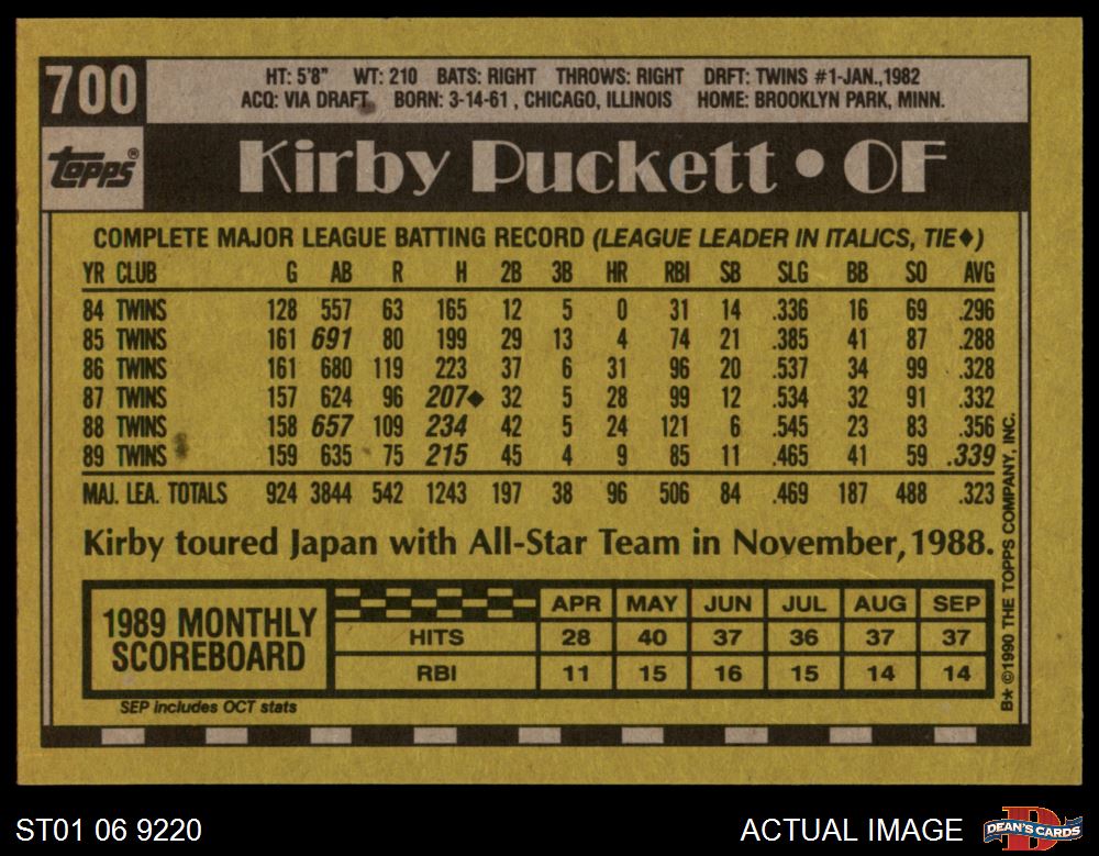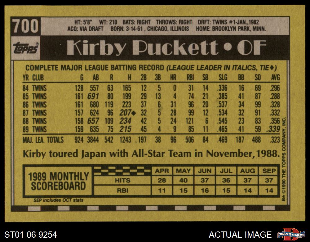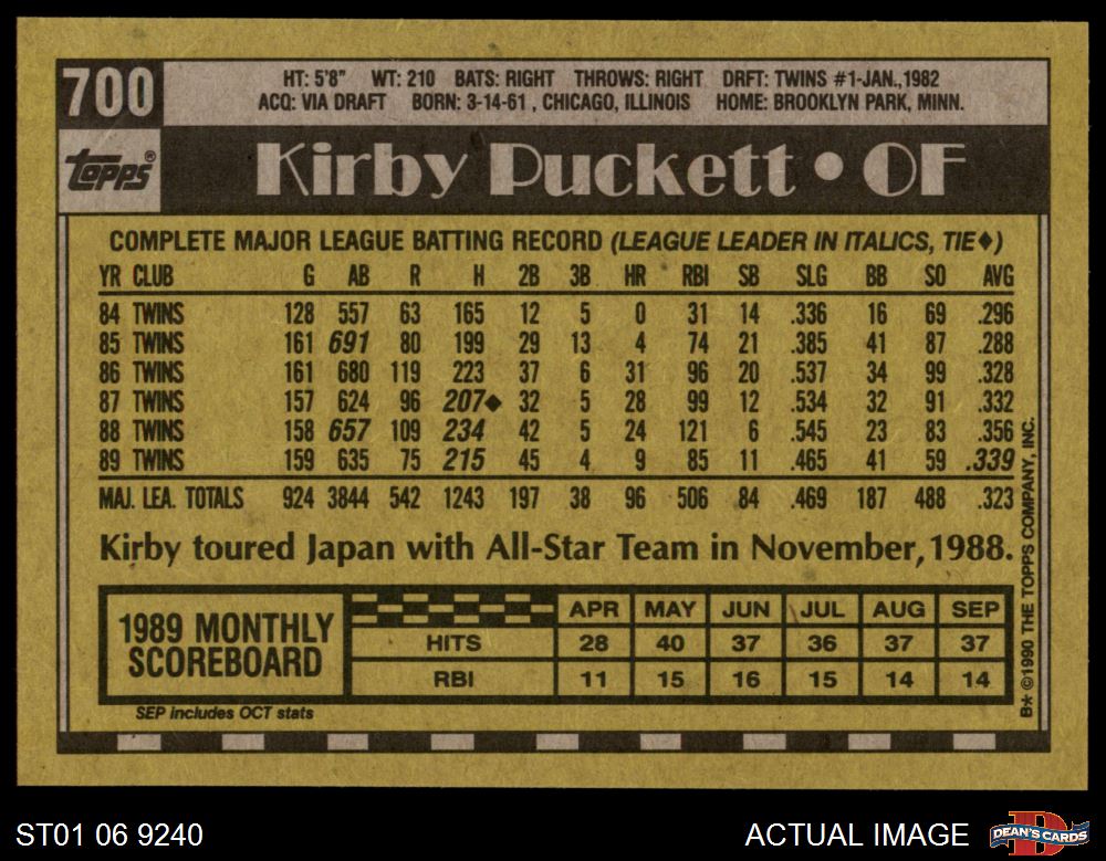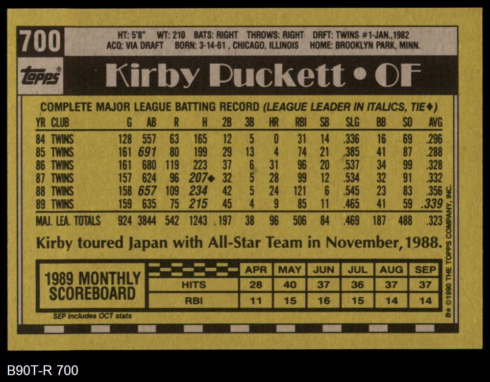 1990 Topps #700 Kirby Puckett