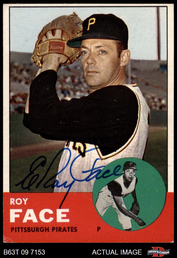 1963 Topps #409 Box in grandstand, below the flagpole, may or may not touch the right border Roy Face AUTOGRAPHED