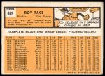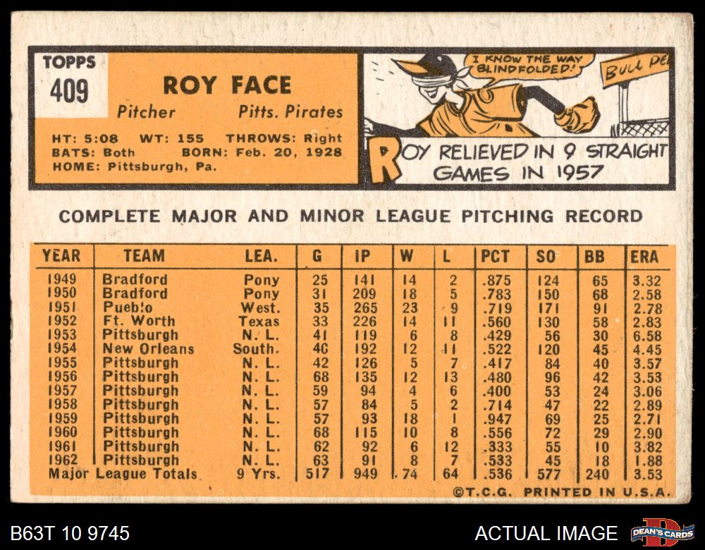 1963 Topps #409 Box in grandstand, below the flagpole, may or may not touch the right border Roy Face 3 - VG