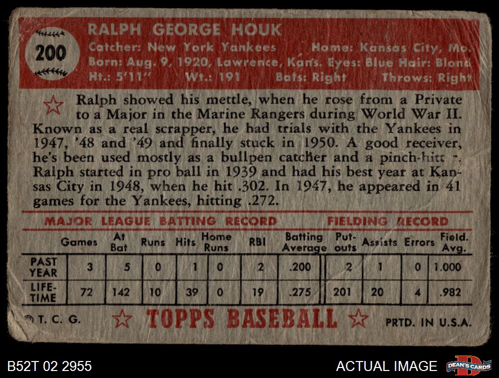 1952 Topps #200 Ralph Houk AUTHENTIC