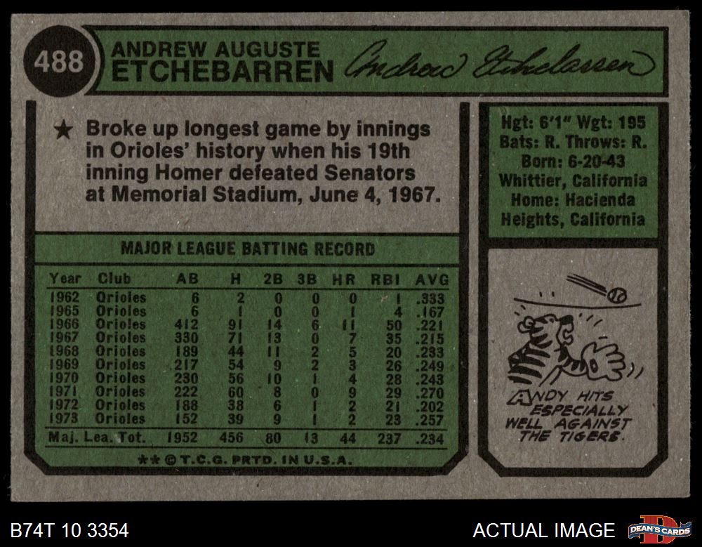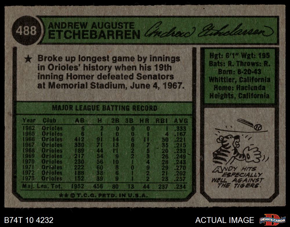 1974 Topps #488 Andy Etchebarren 5 - EX