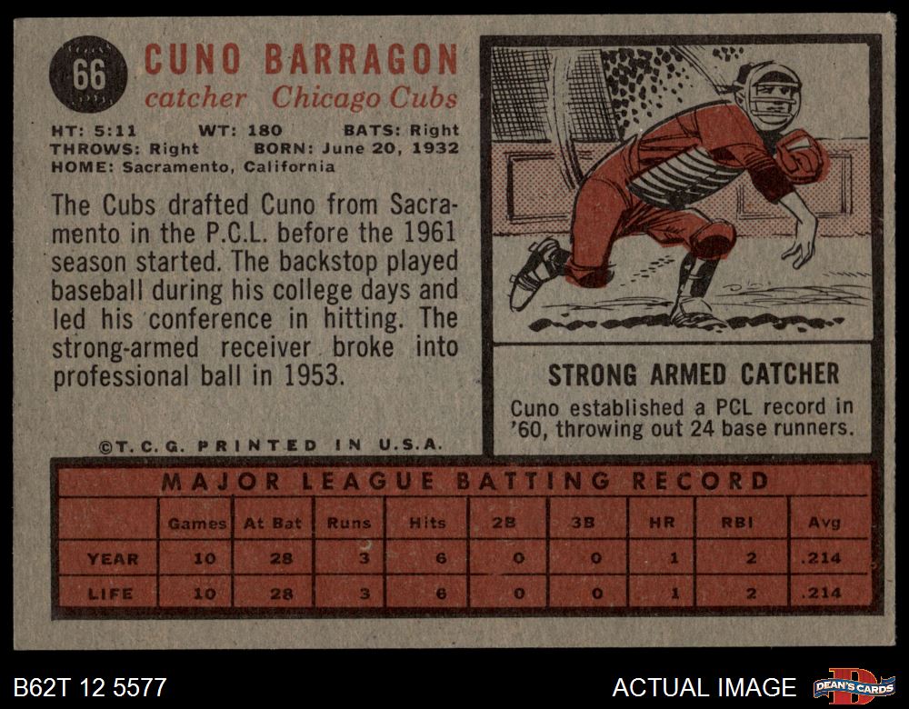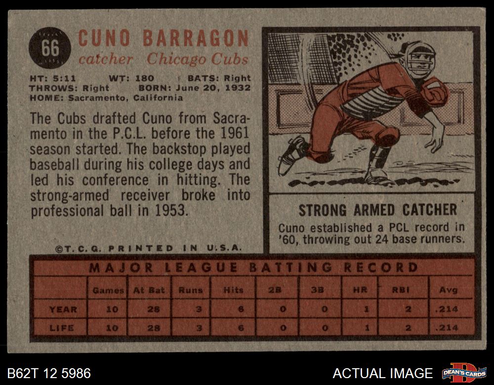 1962 Topps #66 Cuno Barragon 2 - GOOD