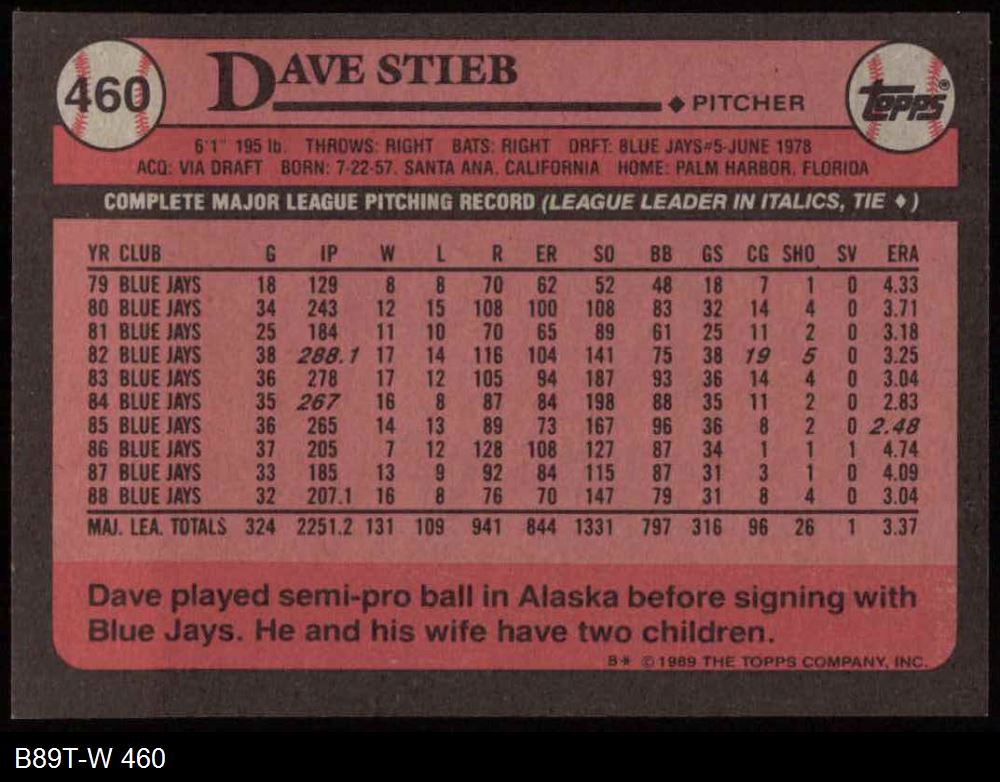 1989 Topps #460 Dave Stieb