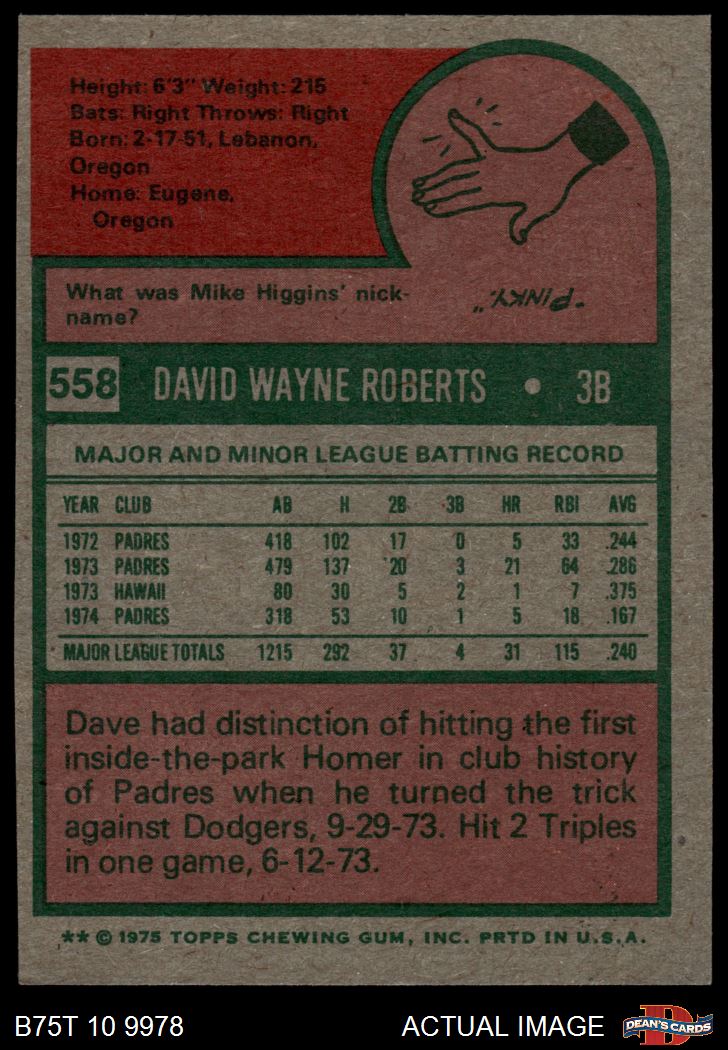 1975 Topps #558 Dave Roberts 7 - NM