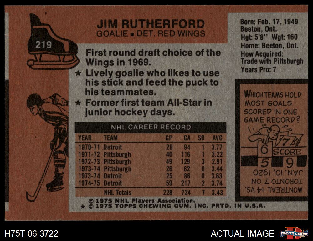 1975 Topps #219 Jim Rutherford 4 - VG/EX