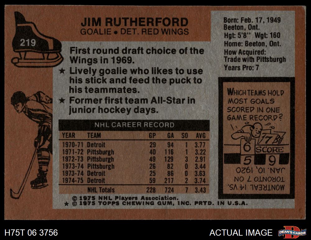 1975 Topps #219 Jim Rutherford 5 - EX