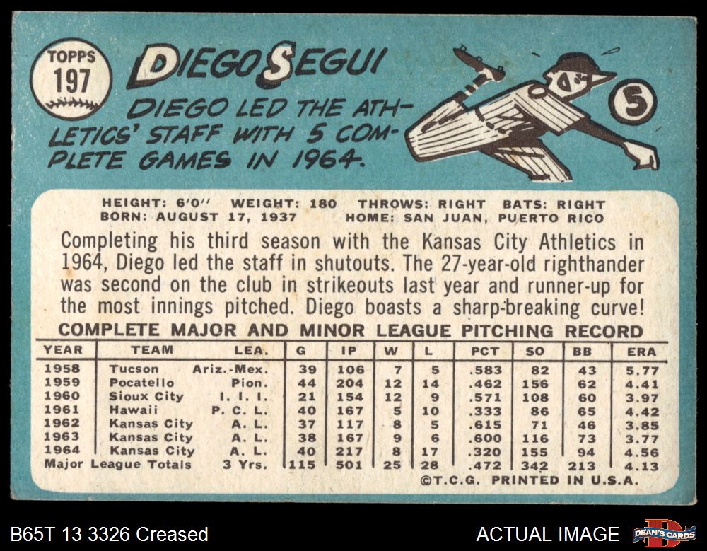 1965 Topps #197 Diego Segui