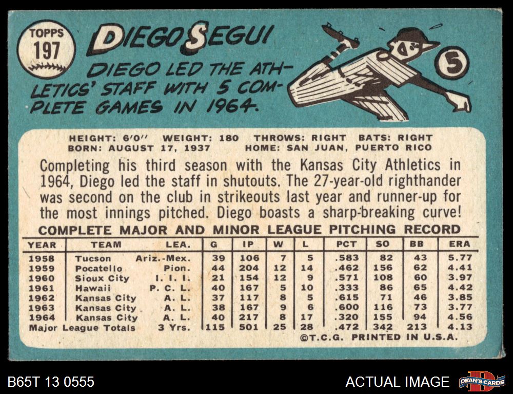 1965 Topps #197 Diego Segui Front Thumbnail