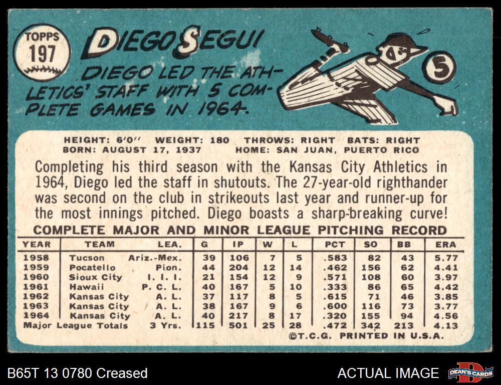 1965 Topps #197 Diego Segui 2 - GOOD