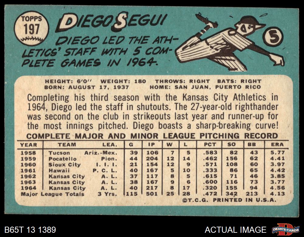 1965 Topps #197 Diego Segui 5 - EX